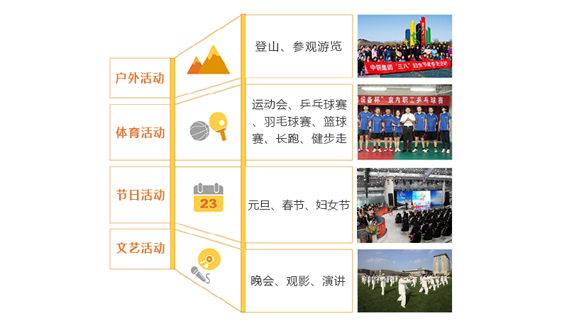 中钢集团鼓励员工强健体魄、提升修养、高效工作、快乐生活,通过组织各种文化活动,丰富员工的业余生活,同时增强了团队的凝聚力和员工归属感。