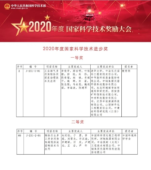11月3日上午,中共中央、国务院在北京隆重举行2020年国家科学技术奖励大会。中钢集团科技创新再添喜讯——中钢集团天澄环保科技股份有限公司(以下简称“中钢天澄”)作为完成单位参与的《工业烟气多污染物协同深度治理技术及应用》和《钢铁行业多工序多污染物超低排放控制技术与应用》两项研究成果分别获得国家科学进步一等奖、二等奖。